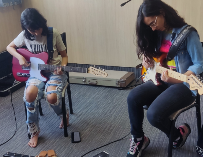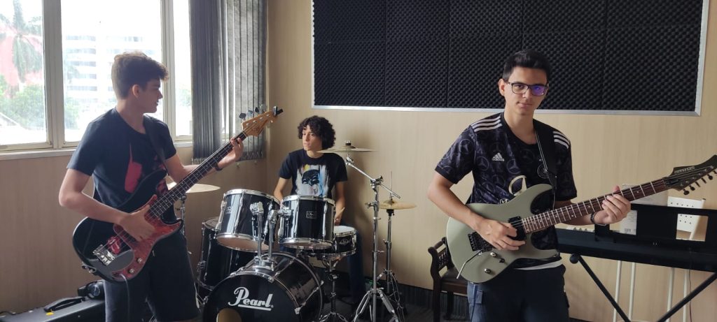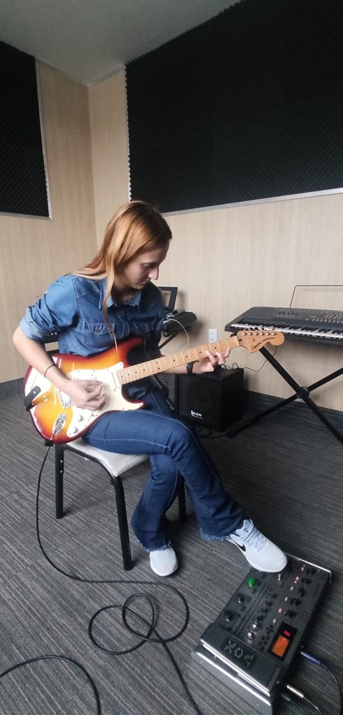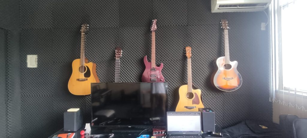 Utilizo bastante a Tv para expor os conteúdos visuais, como tablaturas / Vídeos. A sala também possui ar condicionado.
